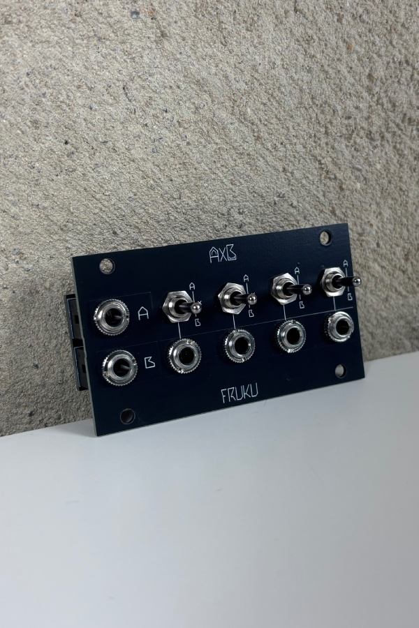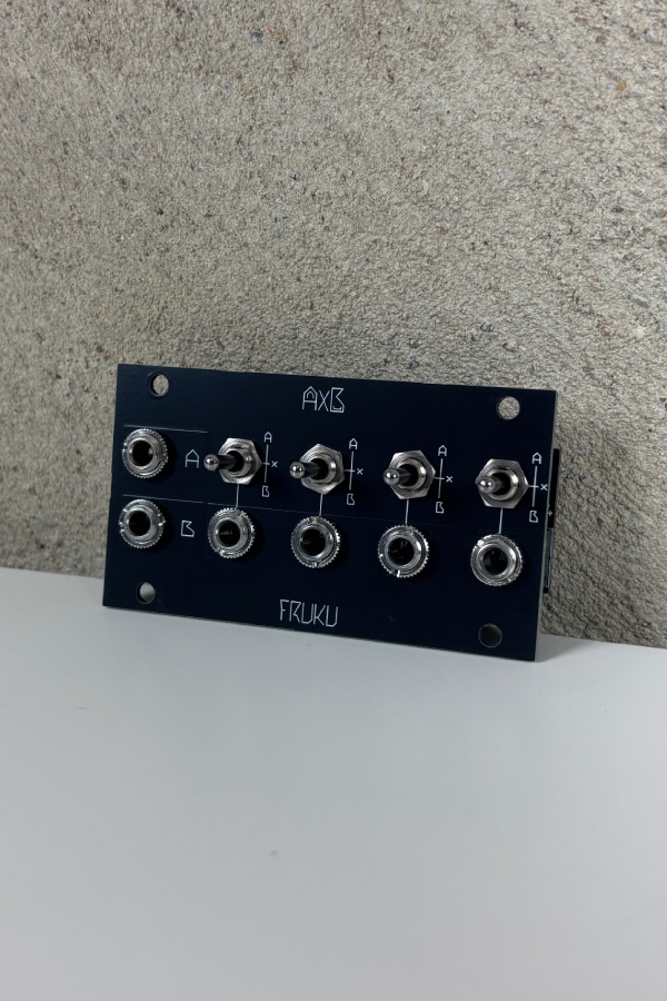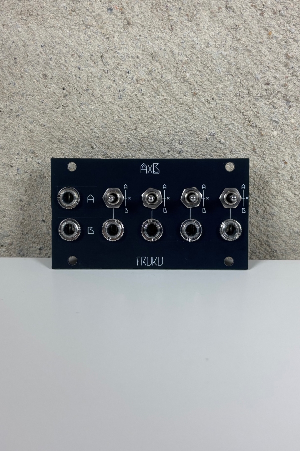 AXB is a 4:2 switch with four input jacks and two output jacks. Each input can be routed to output A, output B or muted with a three-way switch.